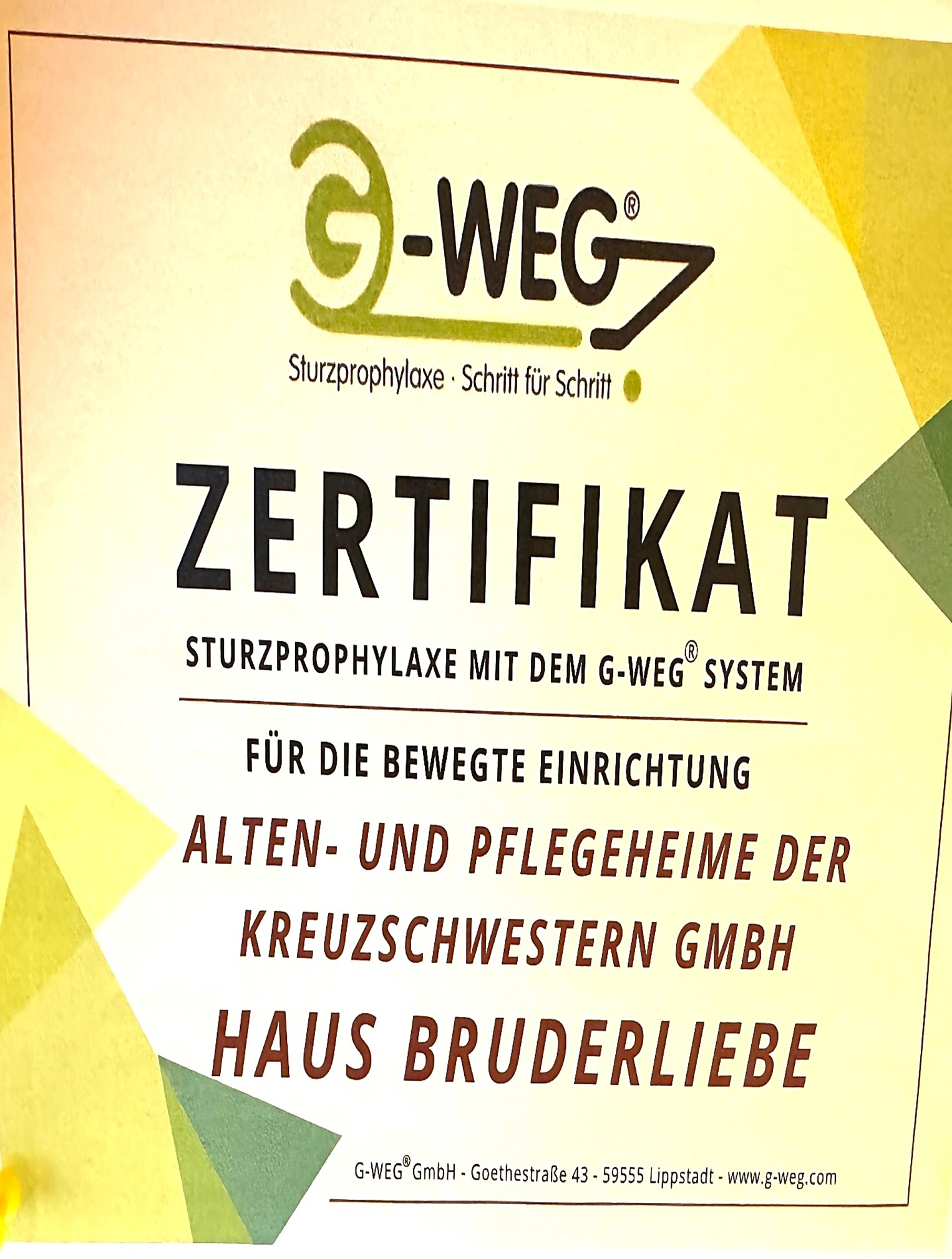 Wir haben bereits ein Zertifikat "bewegte Einrichtung" und ein Zertifikat für die Online-Fortbildung „G-WEG“ erhalten.