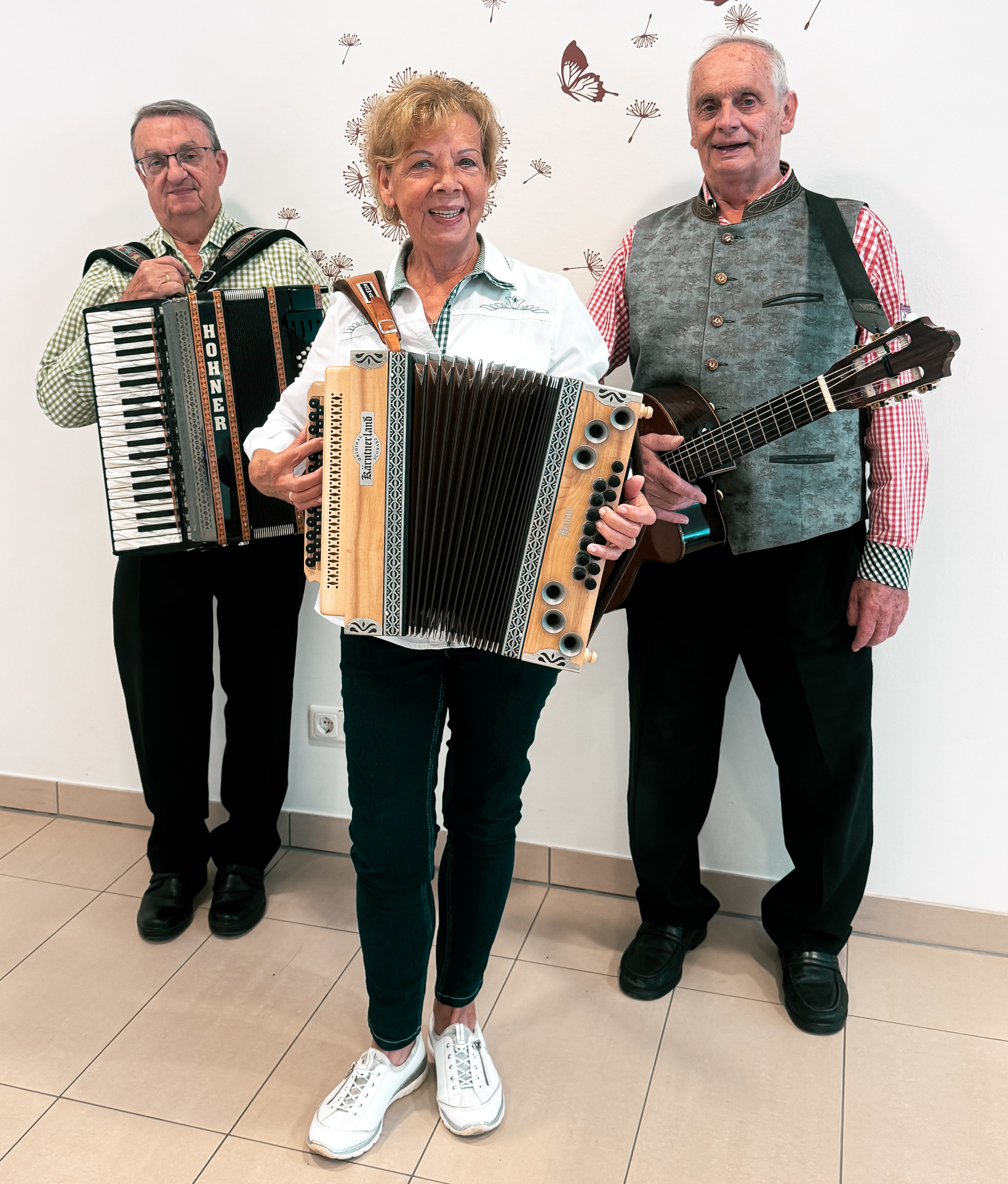 „Familienmusik Krötzl“, ein musikalisches Dreiergespann, das mehr als nur Töne liefert. Mit Karl am Akkordeon, Johanna an der Steirischen Harmonika und Maximilian an der Gitarre bringen sie Lieder zum Leben, die viele Bewohner aus ihrer Jugend kennen. Es sind Melodien, die Erinnerungen wecken, die Herzen öffnen und selbst jene zum Mitsingen bringen, die sonst eher still und in sich gekehrt sind.
