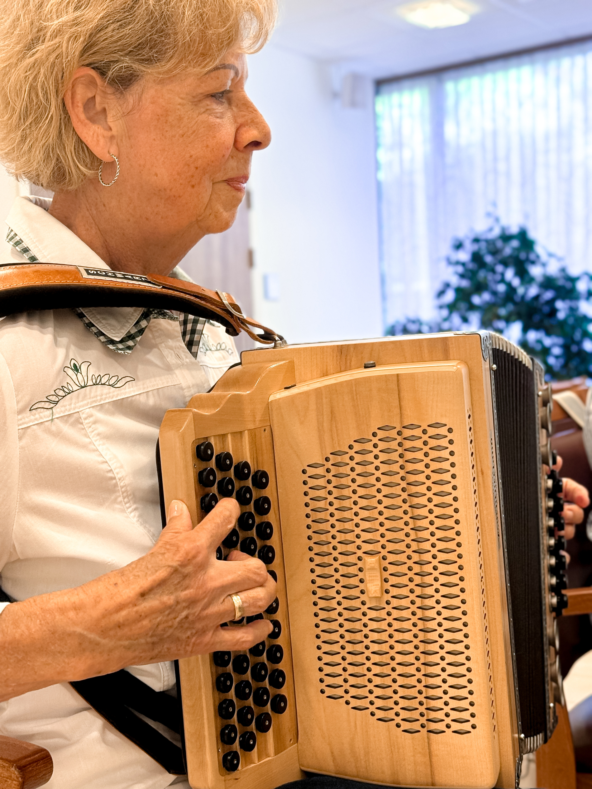 Was sie verbindet, ist nicht nur familiäre Nähe, sondern eine tiefe Liebe zur Musik – und ein großes Herz für andere. Seit über 20 Jahren engagieren sie sich ehrenamtlich, begannen damals in Gallspach, Wels und Thalheim, und sind seit zehn Jahren fester Bestandteil auch bei uns im Haus.
