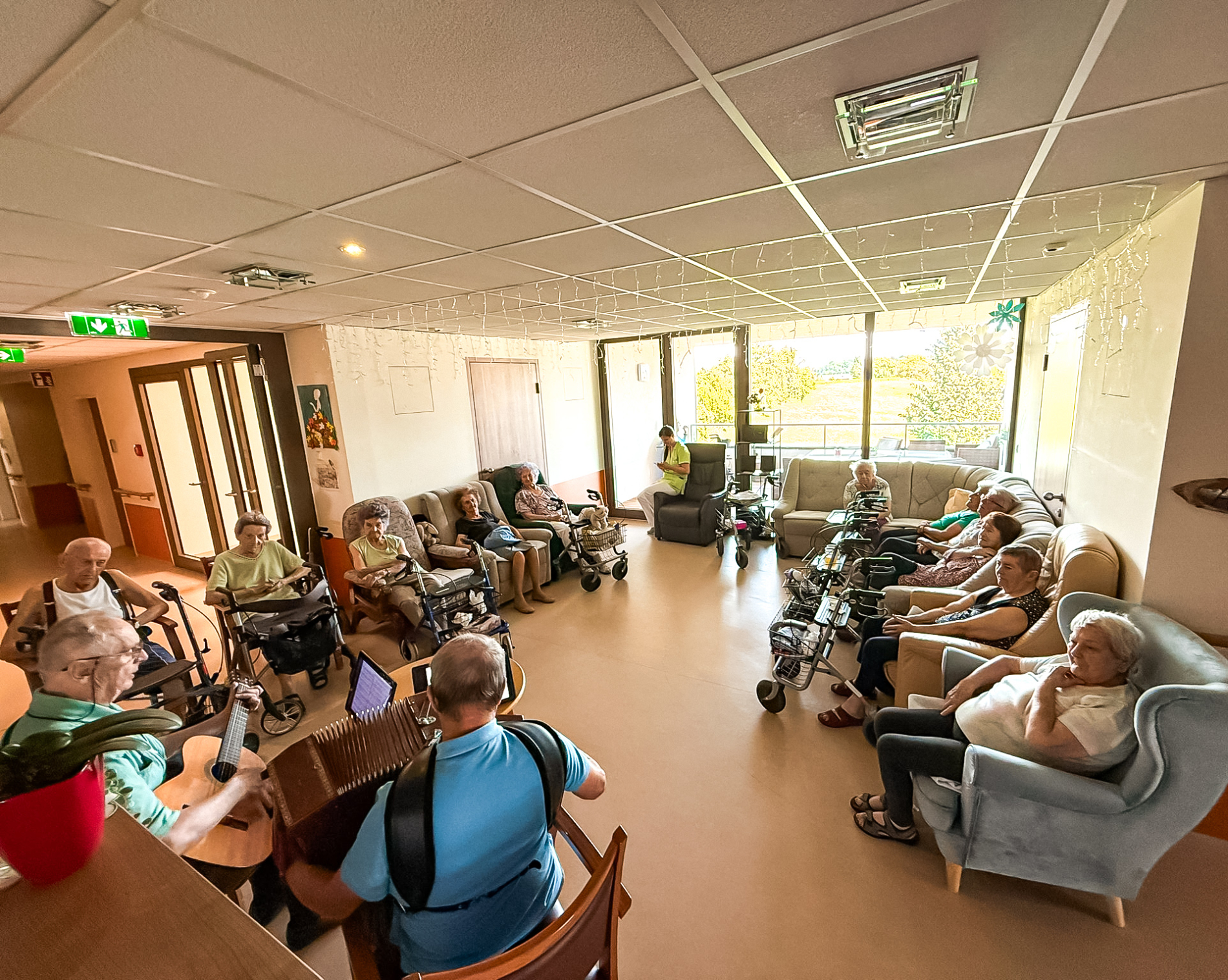 Nach dem zweiten Lied sieht man oft, wie Füße wippen und die Lippen sich auf einmal mit bewegen. Für die Bewohner ist dieser musikalische Nachmittag eine willkommene Abwechslung und ein Moment der Leichtigkeit.